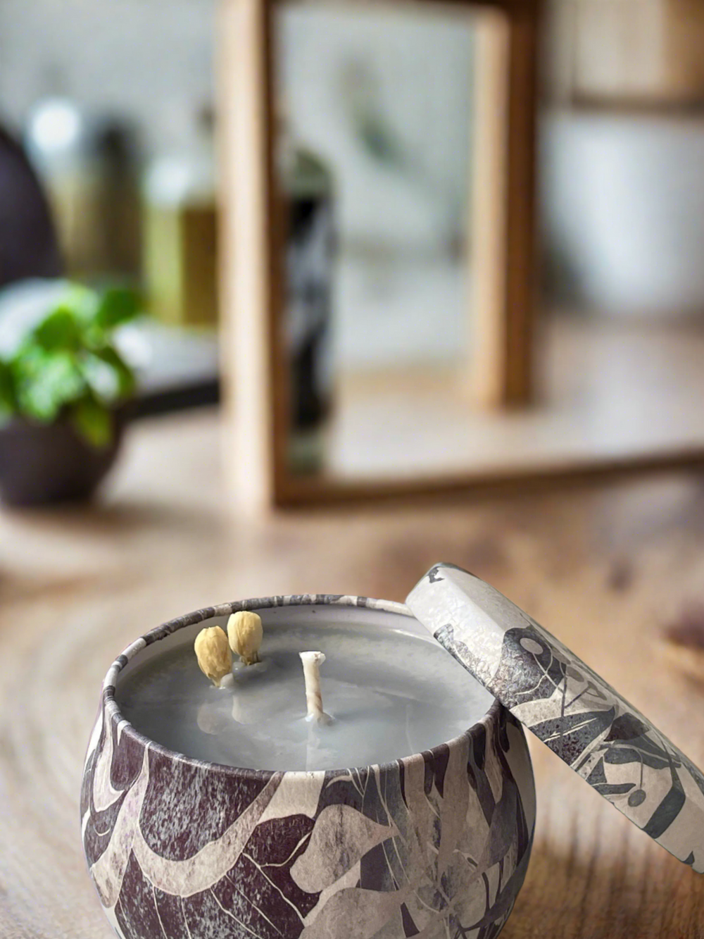 My candles are made from only natural ingredients, so they contain a mixture of coconut wax and soy wax, to which I add a little cocoa butter and sometimes almond oil and other butters. My candles do not contain petroleum products or paraffin wax, nor a paraffin-coated wick as many sell.