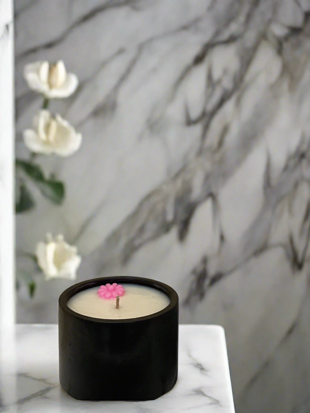 My candles are made from only natural ingredients, so they contain a mixture of coconut wax and soy wax, to which I add a little cocoa butter and sometimes almond oil and other butters. My candles do not contain petroleum products or paraffin wax, nor a paraffin-coated wick as many sell.